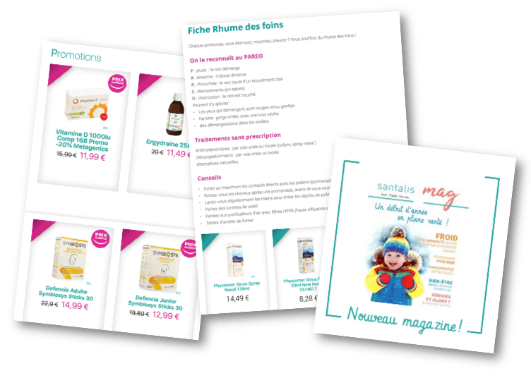 Découvrez nos offres promotionnelles. Tous les deux mois, nous mettons en avant de nouvelles promotions pour vous permettre de prendre soin de votre santé à petit prix. De plus, vous trouverez sur notre site des fiches conseils pour vous aider à traiter les maux et pathologie les plus courantes, ainsi que des recommandations sur les produits les plus adaptés à votre situation.